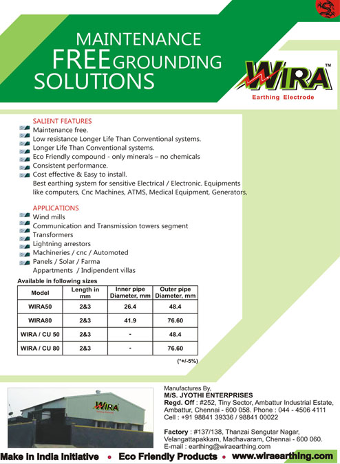 We would like to introduce ourselves as the largest manufacturer in Electrical Earthing System, We have a vast Experience in Earthing.