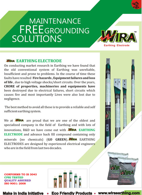 Wira Earthing Electrode compound is made of minerals and hydroscopic compounds hence retains the moisture and increases the conductivity whereas ordinary salt tends to dissolve due to regular water pouring activity and the earth pit becomes dry and does not conduct the fault current. |